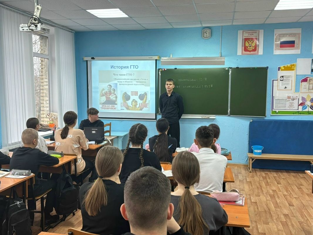 18 ноября 2025 года для учащихся 8‑х классов состоялась познавательная лекция, посвящённая истории Всероссийского физкультурно‑спортивного комплекса «Готов к труду и обороне» (ВФСК «ГТО»).