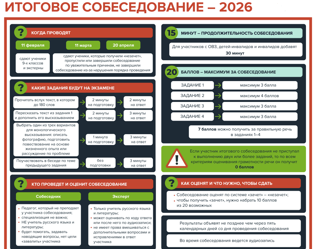 Календарь сдачи итогового собеседования 2025-2026 учебный год
