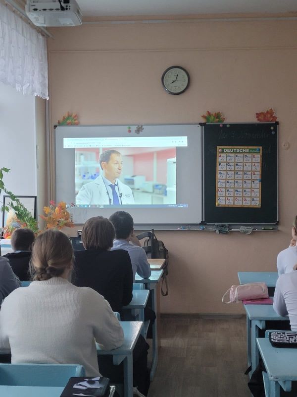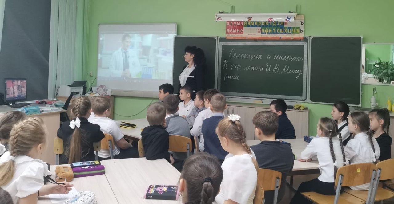 После окончания линейки ученики прошли на внеурочное занятие «Разговор о важном» по теме «Селекция и генетика. К 170-летию И.В. Мичурина».