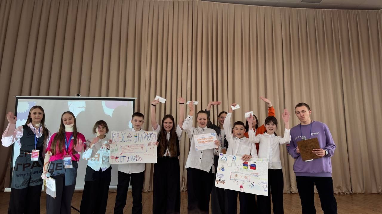 У наших участников было два захватывающих тура, в ходе которых они с помощью фломастеров и карандашей на ватмане рисовали национальные костюмы народов России,традиционные блюда, ремесла и защищали свой проект. Они смогли продемонстрировать знания, креативность и командный дух.
